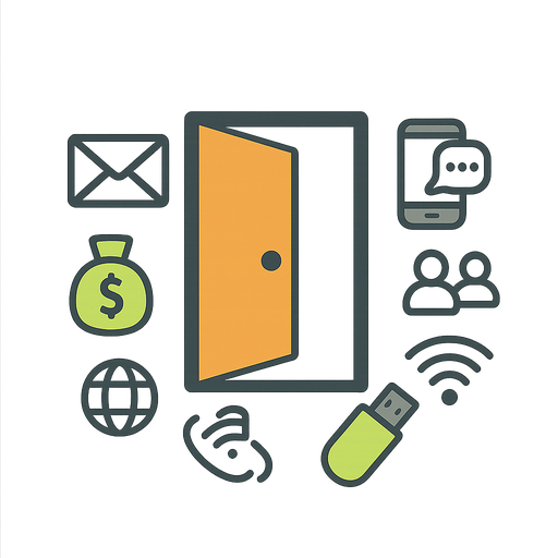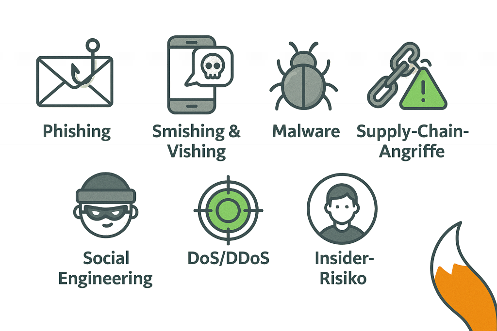 E-Mail (Phishing), SMS (Smishing), Telefon (Vishing), Social Media, USB-Sticks, WLAN, unsichere Websites